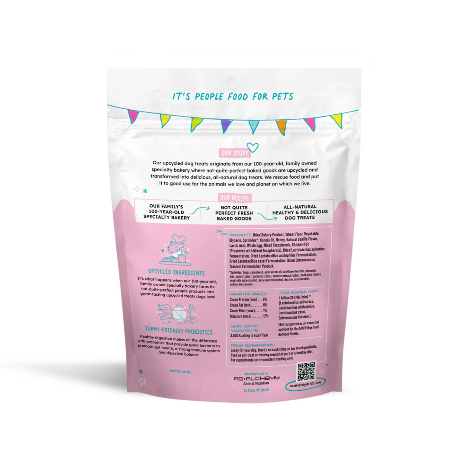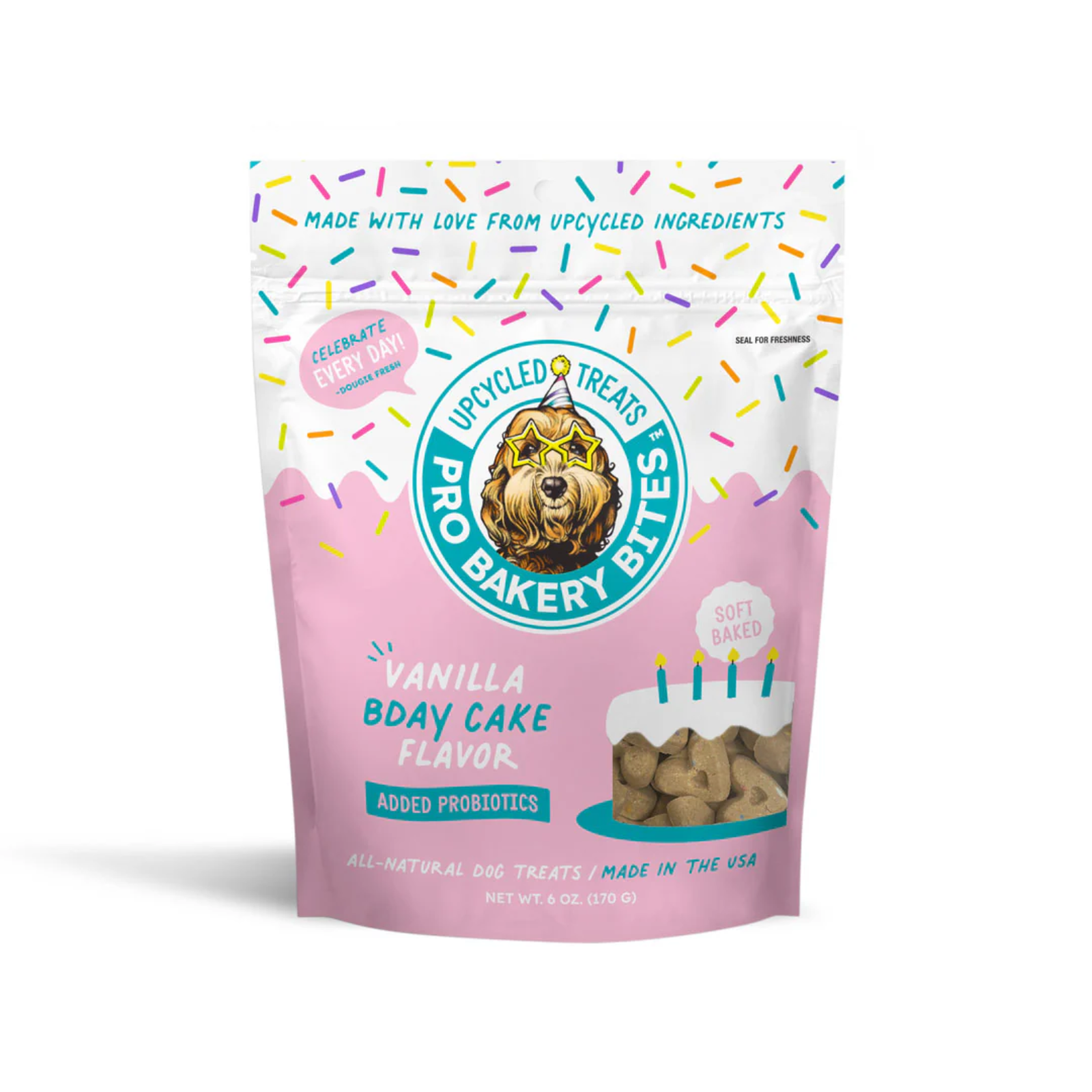 Dried Bakery Product, Wheat Flour, Vegetable Glycerin, Sprinkles*, Coconut Oil, Honey, Natural Vanilla Flavor, Lactic Acid, Whole Egg, Mixed Tocopherols, Rosemary Extract, Chicken Fat (Preserved with Mixed Tocopherols), Lactobacillus salvarius Fermentation, Lactobacillus acidophilus Fermentation, Lactobacillus casei Fermentation, Enterococcus faecium Fermentation.