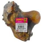 Jones Knuckles consist of two knuckles, the femur, and the saddle. These are both knuckles from a USA beef femur bone, dipped in natural liquid smoke and oven-baked with no artificial ingredients. Meat on the knuckles is purposely left on for a better chewing experience. The soft knuckle cartilage is a delicious treat and the bone left leaves a long-lasting chew. This natural chew is best for medium to large dogs. All Jones products are grown and made in America.