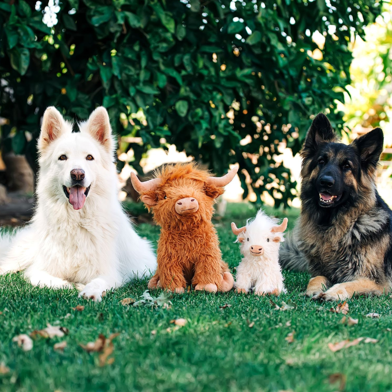 Our Highland Cow is ready to “moo”ve into every dog’s toy bin! With shaggy fur, long horns, and soft plush interior, this dog toy perfectly captures the iconic Scottish farm animal. Measuring in at 8 inches and 14 inches, our Highland Cows are great for large dogs that like to wrestle their toys, or small dogs that need a cuddle companion during naptime. Best of all: it squeaks!