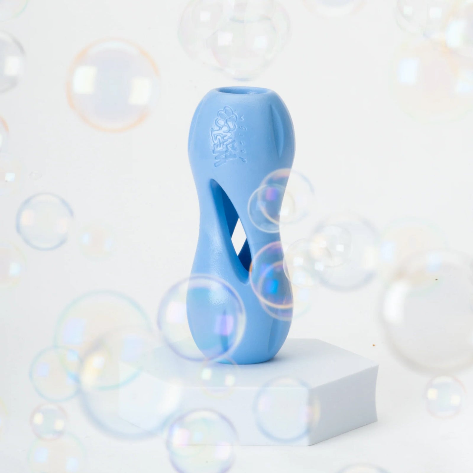 Qwizl is a super tough treat toy that's brilliantly designed to extend the life of expensive dog treats while keeping dogs busy. Side openings release scent and taste while the continuous interior hole allows treats to extend out. Flexible ridges grip multiple sizes of treats.