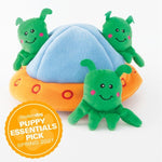 Doggo’s playtime will be filled with intergalactic excitement when they dig into the Zippy Burrow Aliens in UFO! Once your playful pup has all the adorable aliens out, they’ll be begging you to put them back in again and again for hours of fun! It’s the perfect interactive toy for keeping your dog busily engaged in hide-and-seek play that prevents boredom and promotes mental stimulation! This interactive hide-and-seek toy comes with 1 UFO and 3 small squeaky aliens.