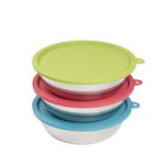 6PC BOX SET (3 STAINLESS STEEL BOWLS & 3 COLOURED SILICONE LIDS)