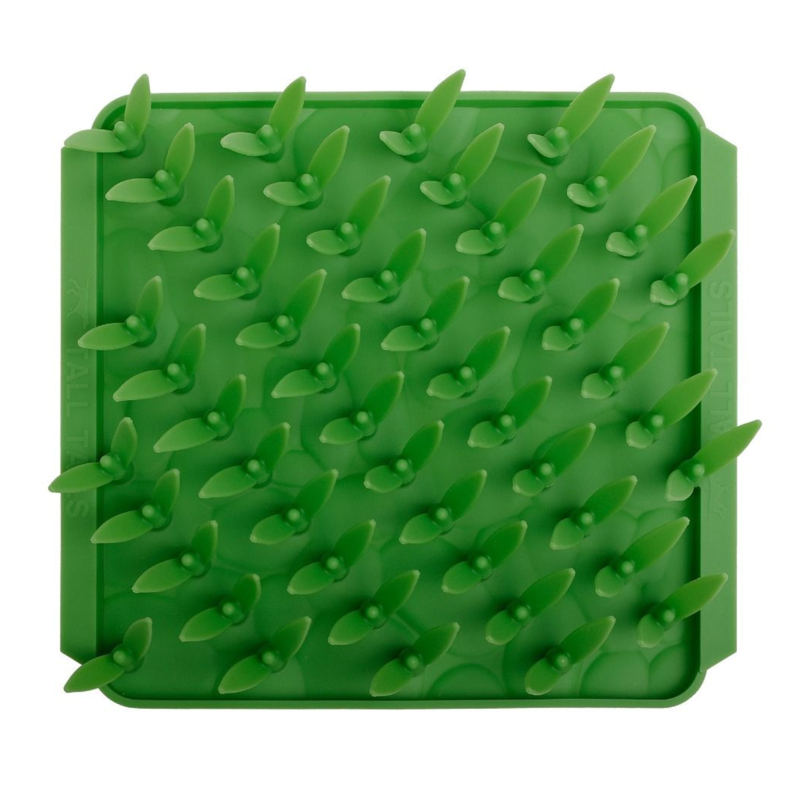 Taste the fun with Tall Tails' Foraging Mat for Dogs. A silicone slow feeder for dogs, this foraging mat encourages slower eating for better digestion. It's easy to use with your dog's favorite foods, like kibble, wet foods, spreadables, and treats. We even included a skid resistant bottom for active eaters. For even more fun, we've made each mat with overlapping edges to join the entire collection together!