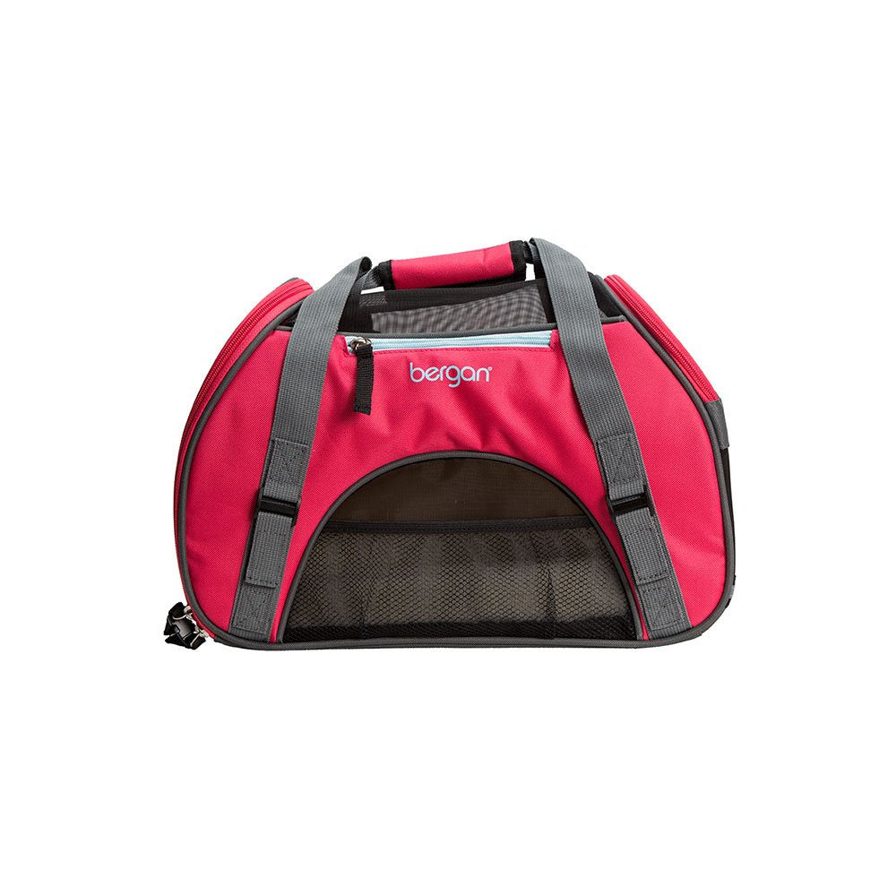 Help your pet travel in comfort with the Bergan® Comfort Carrier™! The carrier's practical design takes the stress out of traveling. Mesh panels allow for maximum breathability, and the adjustable strap makes it easy to carry on-the-go. Plus, the carrier comes with a washable fleece travel bed for cushioned comfort. The Comfort Carrier has a safety-tested Seat-Belt Loop™ to secure the carrier in the car, and its design is also airline compatible. Take this carrier with you in the car or on the plane to make pet travel stress-free!.