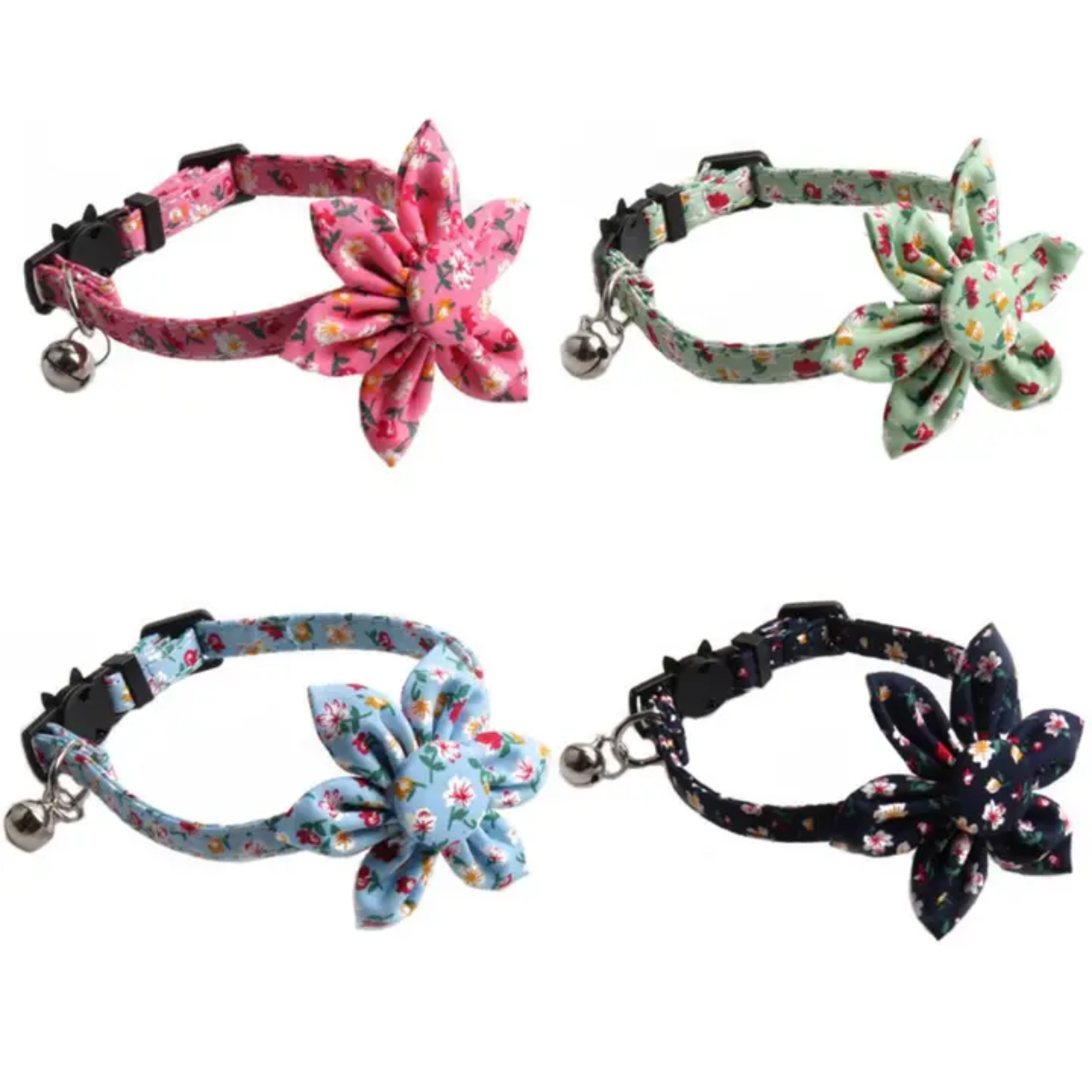 Adjustable Floral Cat Collar with Bell