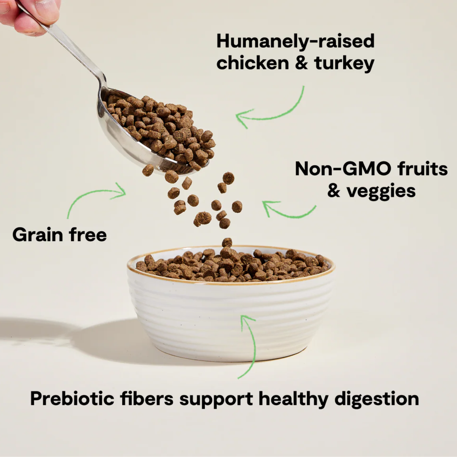 A high protein meal they won't turn their head at. It's packed with Certified Humane® turkey and chicken raised without antibiotics and functional ingredients like locally sourced non-GMO cranberries, and superfoods like coconut oil, turmeric and dandelion greens. High in protein and fresh turkey & chicken