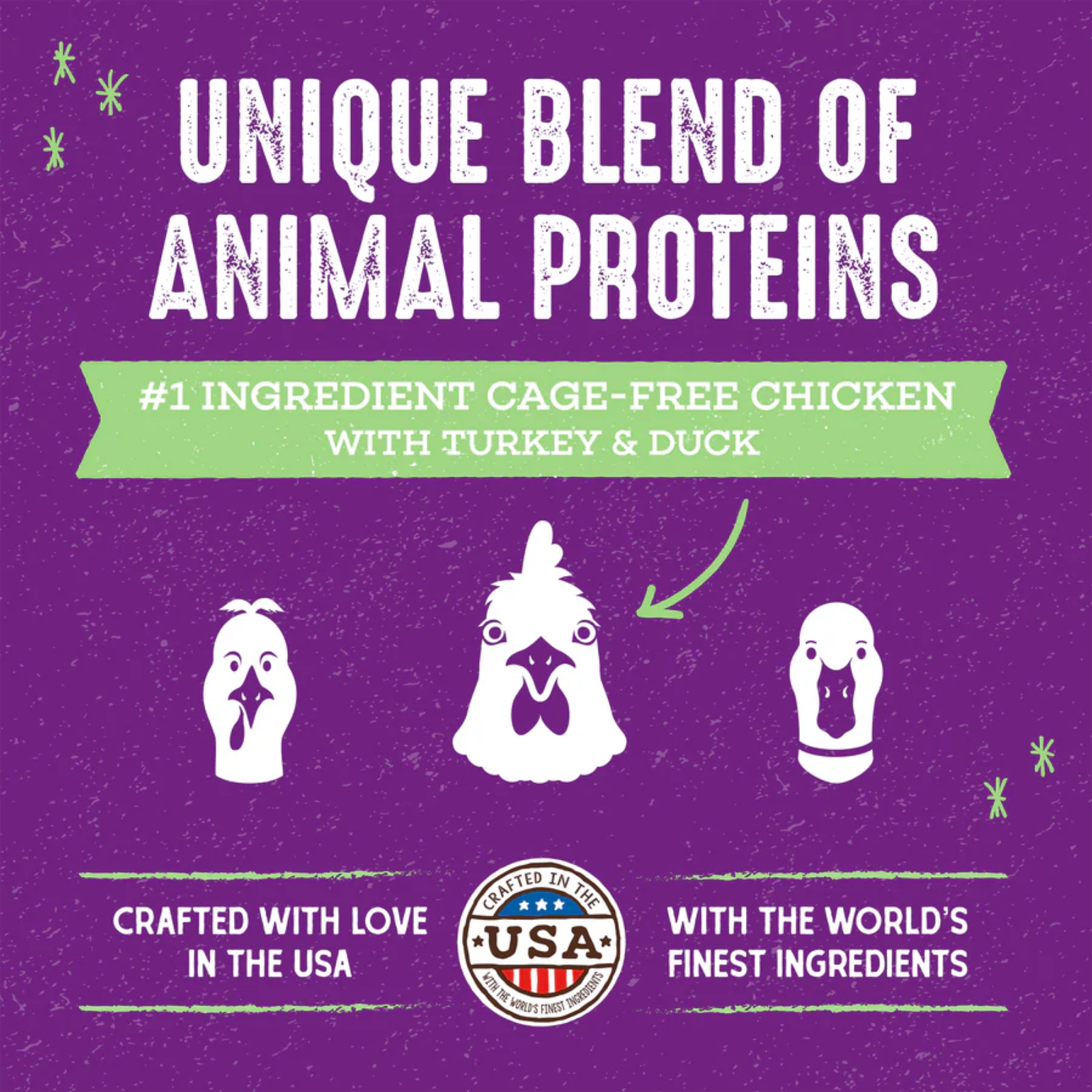Unique blend of cage-free chicken, cage-free turkey and cage-free duck