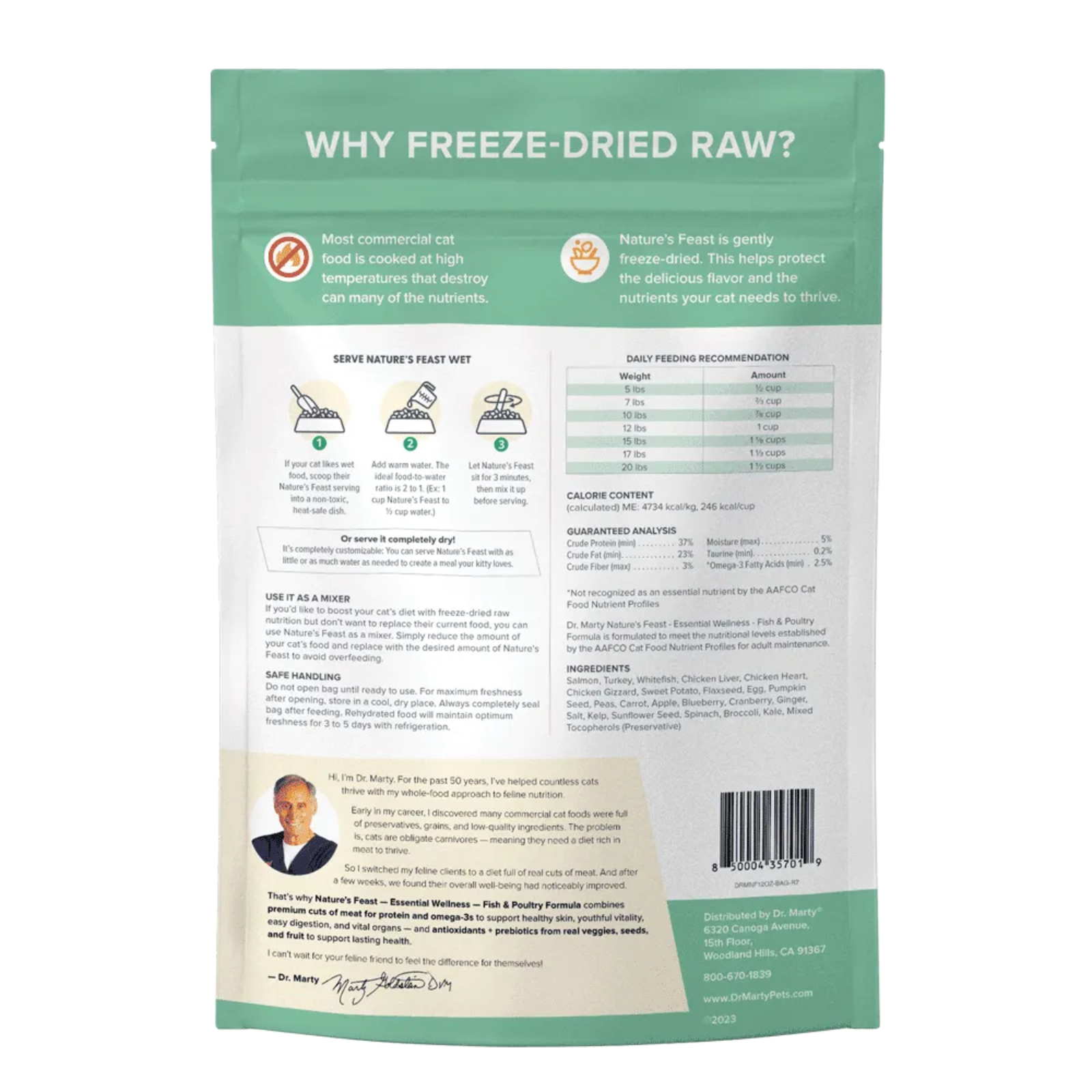 Nature’s Feast – Essential Wellness – Fish & Poultry is designed to support your cat’s healthy teeth and skin, easy digestion, youthful energy and mobility, and healthy lifespan. Each batch is made from premium meats, veggies, fruit and seeds — and contains zero artificial preservatives, additives, fillers, or synthetic ingredients.
