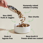 - Freeze-Dried Raw & Bone Broth Coated Kibble with Chicken & Turkey