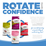 Chicken, chicken meal, peas, pea flour, chicken fat (preserved with mixed tocopherols and citric acid), natural flavors, dried egg product, pea fiber, flax seeds, yeast extract, calcium carbonate, dried brewers yeast, phosphoric acid, pea starch, dried tomato pomace, salt, DL methionine, potassium chloride, carrots, sunflower oil, minerals (iron proteinate, zinc proteinate, copper proteinate, manganese proteinate, cobalt proteinate), cranberries, apricots, cherries, taurine, lactic acid, turmeric, dried chicory root, vitamins (vitamin A acetate, vitamin D3 supplement, vitamin E supplement, niacin, d-calcium pantothenate, thiamine mononitrate, riboflavin supplement, pyridoxine hydrochloride, folic acid, biotin, vitamin B12 supplement), choline chloride, L-ascorbyl-2-polyphosphate (source of vitamin C), inositol, yucca schidigera extract, calcium iodate, sodium selenite, rosemary extract, yeast culture (Saccharomyces cerevisiae), dried Lactobacillus acidophilus fermentation product, dried Enterococcus faecium fermentation product, dried Aspergillus niger fermentation extract, dried Trichoderma longibrachiatum fermentation extract, dried Bacillus subtilis fermentation extract.