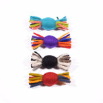 Sweet on the outside, ferocious on the inside—these 4" wool candy-wrapper toys are ready for some serious play. With a dense center and fringed ends, they’re perfect for batting, chewing, and launching across the room. Sold individually by color (no sugar rush required).