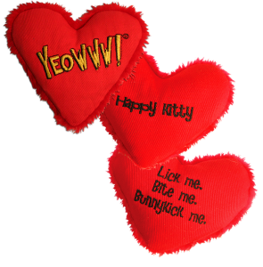 Bursting with attitude and completely stuffed full of organically grown YEOWWW! catnip, it’s no wonder this 4″ heart is an attack waiting to happen! “Lick me. Bite me. Bunnykick me.”