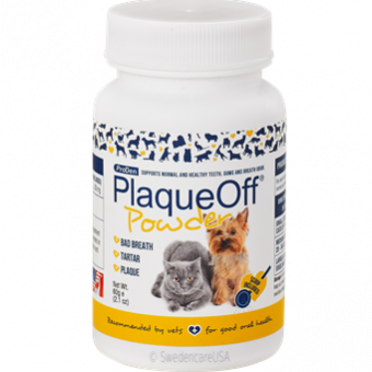 PRODEN PLAQUEOFF® POWDER SHOULD BE USED ONCE DAILY AND CAN BE ADDED TO WET AND DRY FOOD. START WITH A SMALLER AMOUNT TO GET YOUR PET ACCUSTOMED TO THE TASTE, THEN INCREASE TO THE RECOMMENDED AMOUNTS. SPRINKLE THE PRODUCT ON TOP OF THE FOOD OR MIX IT WITH THE DRY OR WET FOOD ONCE A DAY. HOW LONG IT TAKES BEFORE YOU NOTICE AN EFFECT MAY VARY FOR EACH INDIVIDUAL. IF THE DESIRED EFFECT IS NOT ACHIEVED AFTER 2 MONTHS YOU CAN INCREASE THE AMOUNT. AIM TO RETURN TO THE RECOMMENDED AMOUNT WHEN THE EFFECT HAS BEEN ATTAINED.