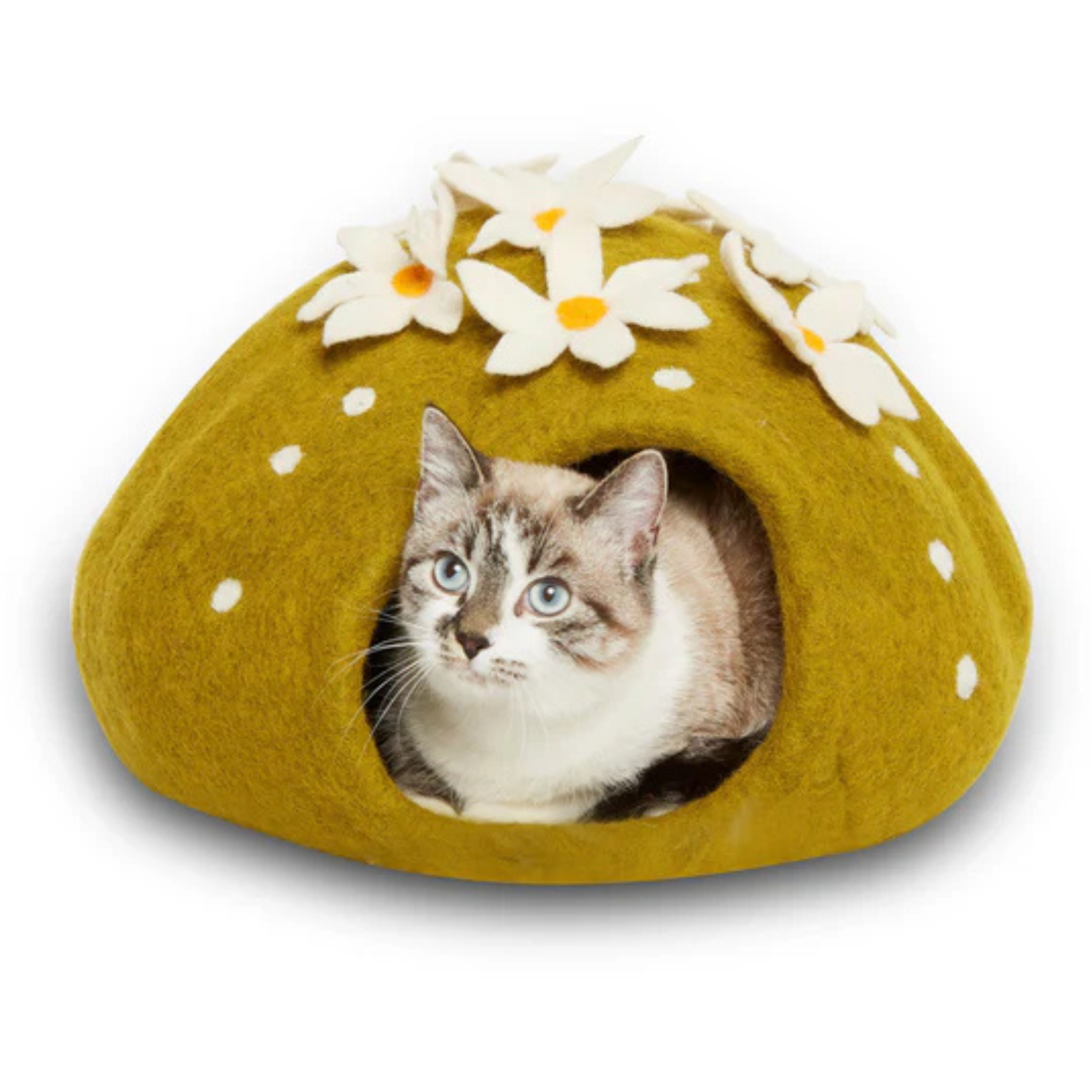 Your pets don’t care how cute their stuff is; they like it for all the right reasons! The Himalayan wool we use for our toys and beds is not chemically cleansed, so it has a lot of lanolin in it. Lanolin is the natural oil unique to sheep’s wool and it reminds cats of the scent of their mother. Lanolin oil conditions their paws and helps to keep their fur healthy and shiny.
