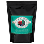 Duck, Duck Meal, Chicken, Chicken Meal, Pea Protein, Dried Egg Product, Potatoes, Pearled Barley, Peas, White Rice, Sweet Potatoes, Chicken Fat, Chicken Liver, Dried Tomato Pomace, Salmon Oil, Brown Rice, Flaxseed, Natural Flavor, DL-Methionine, Carrots, Apples, Broccoli, Cauliflower, Salt, Potassium Chloride, Chicory Root Extract, Taurine, Vitamins, Minerals, Cranberries, Yucca Schidigera Extract, Sorbic Acid (Preservative), Blueberries, Sodium Selenite, Probiotics.