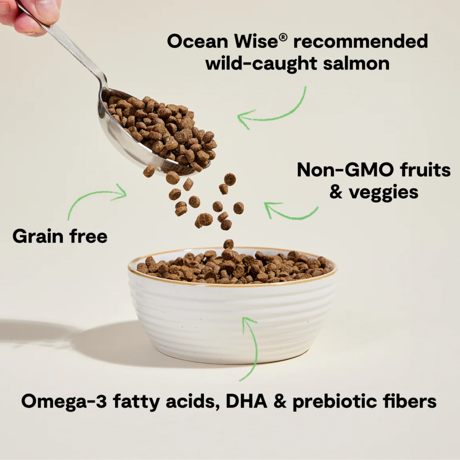 A protein-packed meal for your picky cat. Feel good serving Ocean Wise approved fresh Pacific salmon combined with functional ingredients like locally sourced non-GMO cranberries, and superfoods like coconut oil, turmeric and dandelion greens.