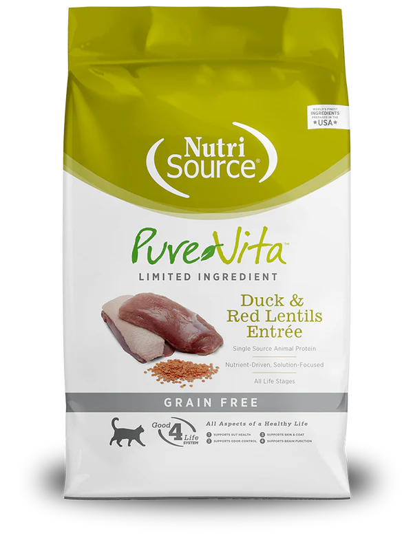 Duck, duck meal, red lentils, garbanzo beans, green lentils, sunflower oil (preserved with mixed tocopherols and citric acid), duck flavor, yeast extract, dried tomato pomace, chia seed, dried brewers yeast, phosphoric acid, DL methionine, calcium carbonate, salmon oil, salt, carrots, choline chloride, minerals (iron proteinate, zinc proteinate, copper proteinate, manganese proteinate, cobalt proteinate), taurine, potassium chloride, cranberries, apricots, cherries, vitamins (vitamin A acetate, vitamin D3 supplement, vitamin E supplement, niacin, d-calcium pantothenate, thiamine mononitrate, riboflavin supplement, pyridoxine hydrochloride, folic acid, biotin, vitamin B12 supplement), turmeric, dried chicory root, lactic acid, inositol, L-ascorbyl-2-polyphosphate (a source of vitamin C), yucca schidigera extract, calcium iodate, sodium selenite, yeast culture (Saccharomyces cerevisiae), dried Lactobacillus acidophilus fermentation product, dried Enterococcus faecium fermentation product, dried Aspergillus niger fermentation extract, dried Trichoderma longibrachiatum fermentation extract, dried Bacillus subtilis fermentation extract.