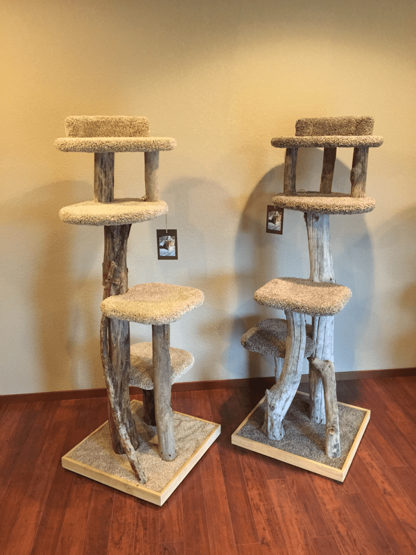 Scratch and Sniff Cat Trees- made right here in WA State! They don't get much more beautiful then these! Each one will vary slightly in carpet and driftwood so they are all unique! We recommend you come in to see our current selection of these beauties! There are several different styles, we are showing a few here online so you get the idea :)