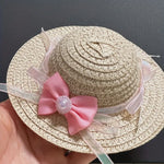 Straw Pink Bows Pet Hat