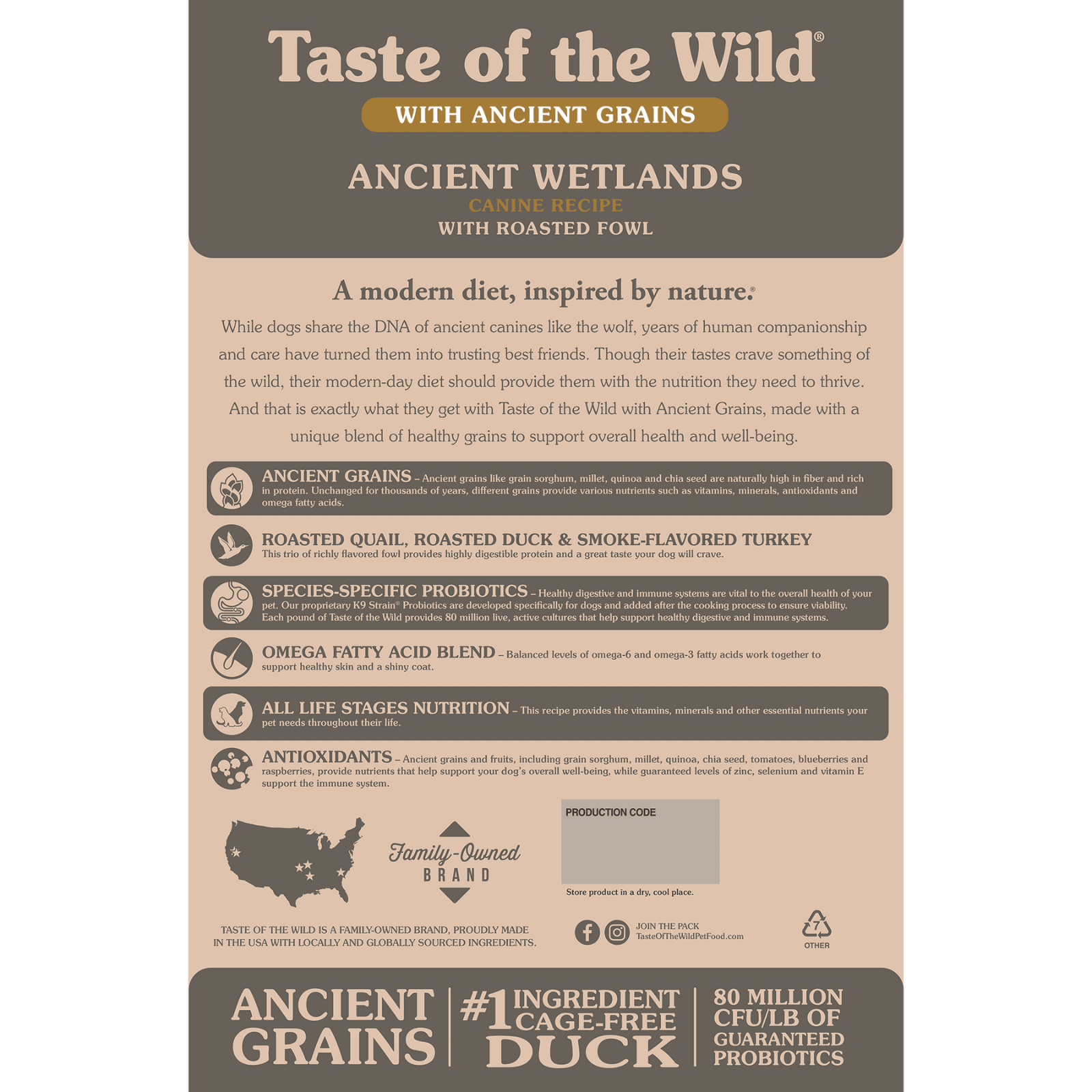 Roasted quail, roasted duck and smoke-flavored turkey combine for a diet rich in highly digestible protein and a taste your dog craves. Ancient grains provide an additional source of protein, fiber and other essential nutrients.