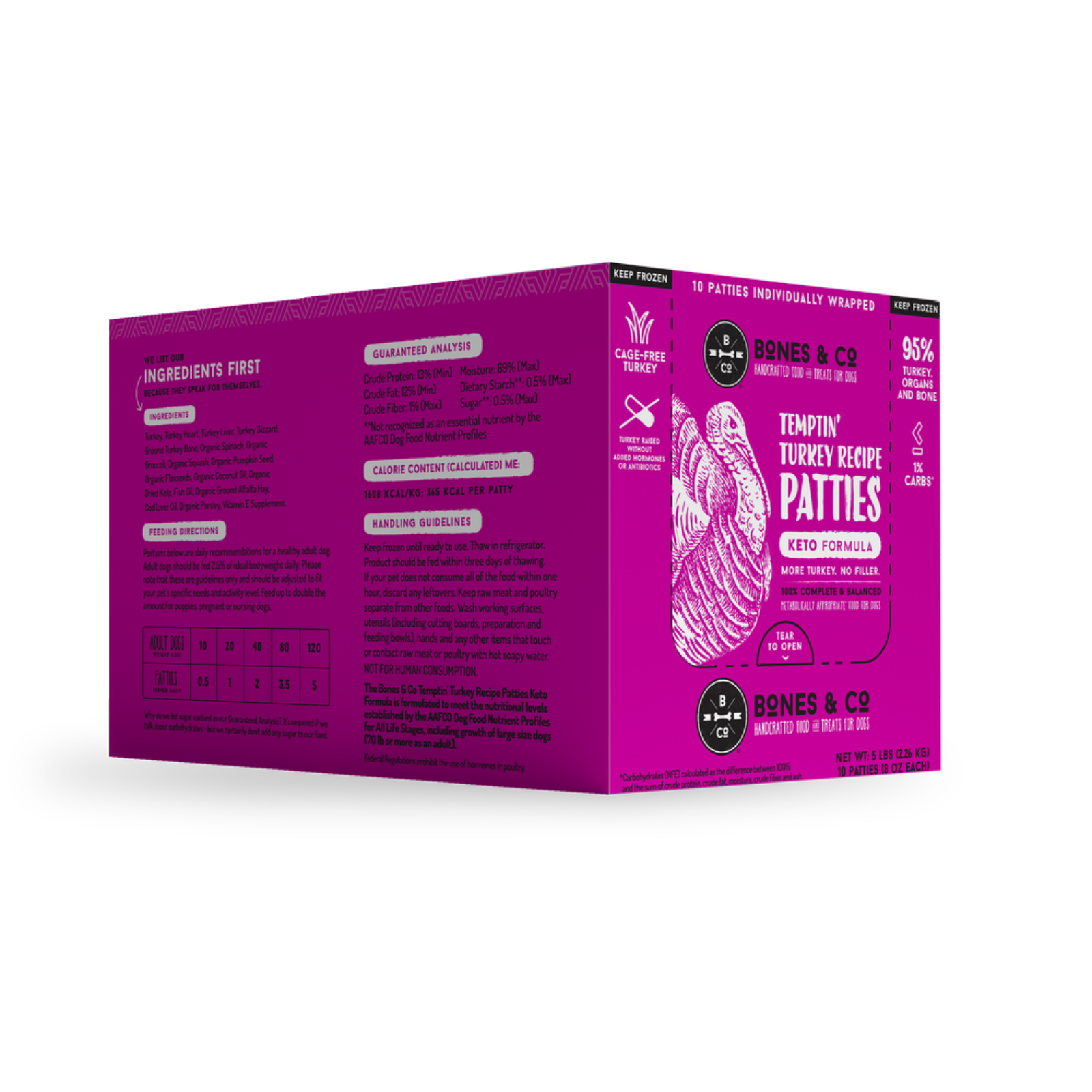 Bones & Co Frozen Raw K9 Temptin' Turkey Patties 6lb