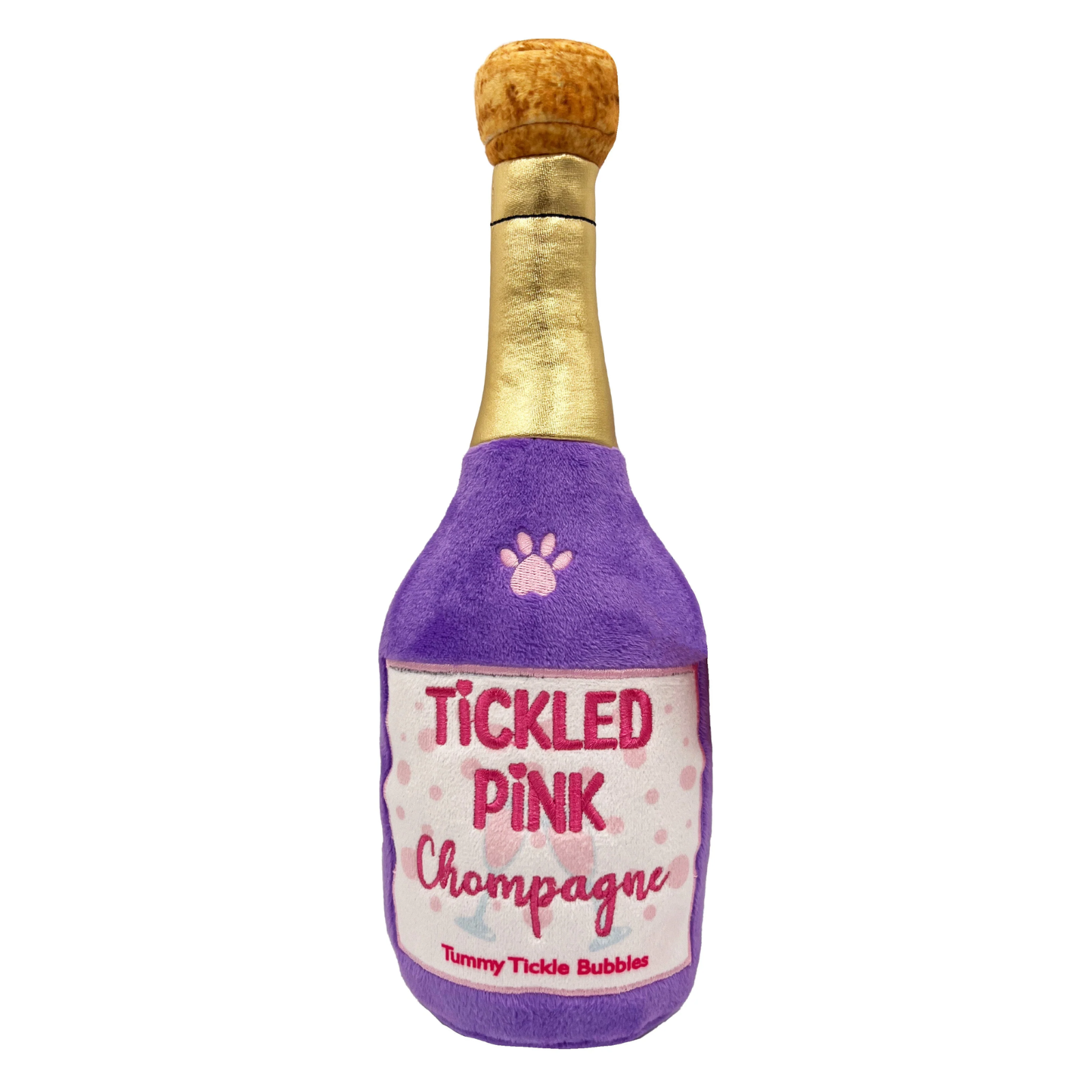 Raise a toast to fun and frolic with your furry friend! The Tickled Pink Chompagne plush dog toy is designed to bring luxury playtime to your pet's everyday activities. Impeccably styled to mimic a lavish champagne bottle, this toy is a celebration of play that your dog is guaranteed to love. Whether it's a special occasion or just another day in paradise, this toy brings the party to you!