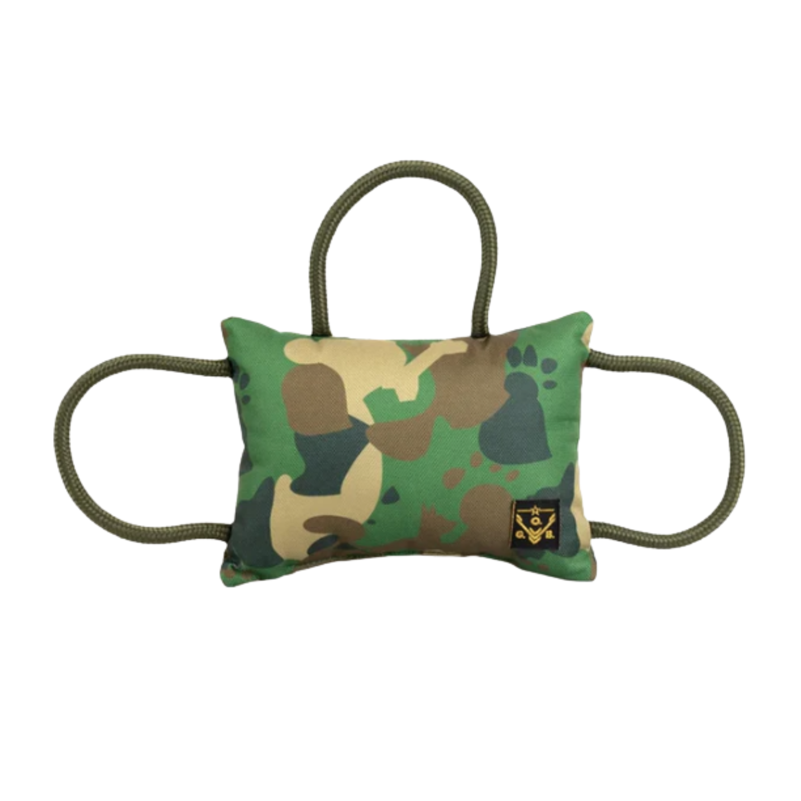 The OGB tug toy is designed after the same tri-handle tugs used to train military and sport dogs.  Designed as both a fun bite pillow and a useful training tug toy.  It uses reinforced 1.8mm polyester cords to withstand pulling.  The camouflage covering is 5cm thick to withstand biting and 100% polyester to be durable and stay in good shape.  And the sublimated camouflage is made to last.