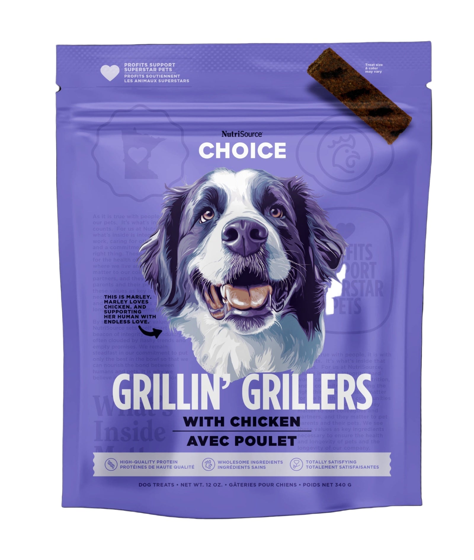 NutriSource Choice Chicken Grillin’ Grillers are made with high-quality protein. Wholesome ingredients that dogs love in a treat make these totally satisfying!