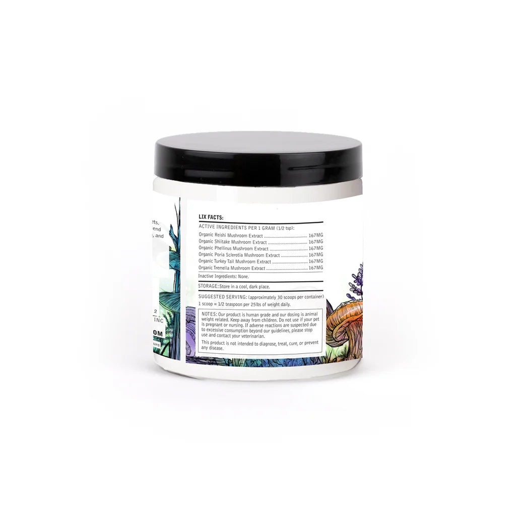 RESTORE is a USDA-certified organic six-mushroom fruiting body extract powder containing the following six mushrooms: Shiitake, Reishi, Phellinus, Poria, Turkey Tail, and Tremella. These mushrooms were specifically chosen for their richness in beta-glucans and healing properties supporting your pet’s overall wellness.