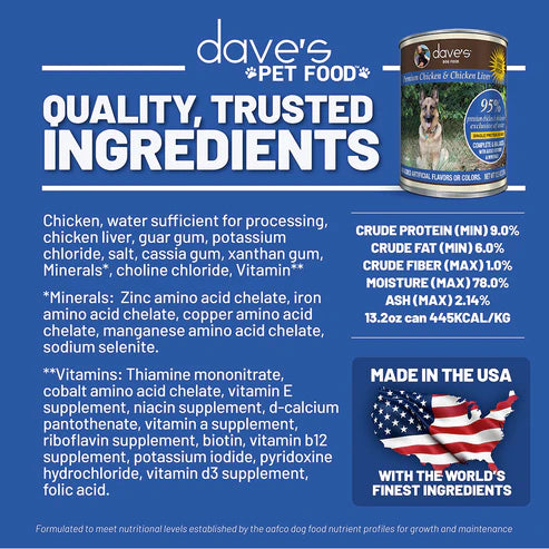 Dave's Dog 95% Premium Meats Chicken & Chicken Liver 12.5oz
