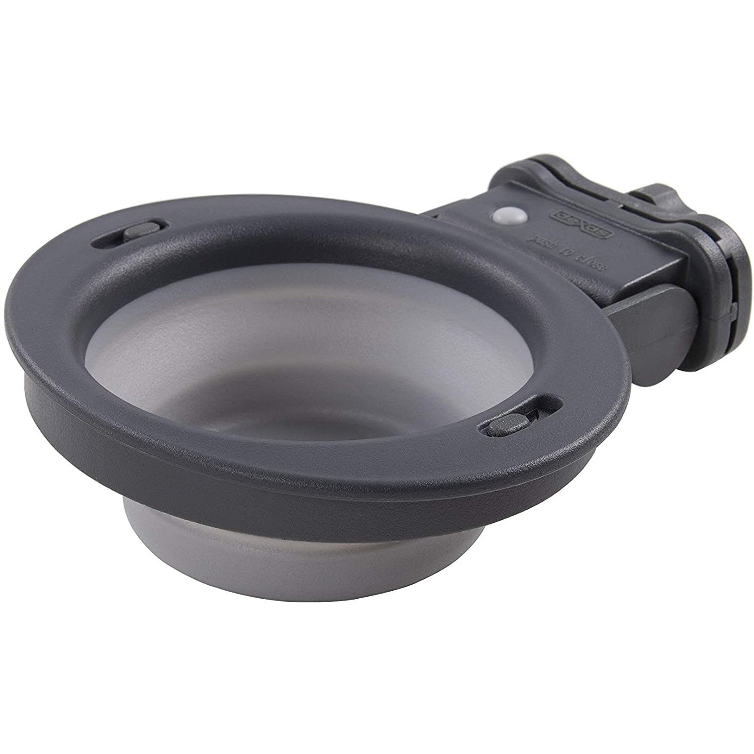 Traveling with pets can be tough! When your pet has to be in a kennel, add this kennel cup to ensure they have food or water on demand. Perfect for long car trips, hotel stays and more, this kennel cup is sure to make travel with your pup a bit easier. The kennel cup measures 6. 125 inches deep, 7. 125 inches wide and is 1. 47 inches tall (when folded). It has a 1 cup capacity. Best of all, the kennel cup can be collapsed and folded up (pivots and locks into place), to provide more room inside the kennel when not in use. The bowl can be removed and is dishwasher safe. Easily attaches to kennel bars at the right height for your pet.