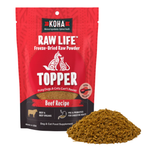 KOHA RAW LIFE Freeze-Dried Raw Topper Beef Recipe for Dogs & Cats is intended for intermittent or supplemental feeding only and is to be served with a complete and balanced pet food. Made in the U.S.A.