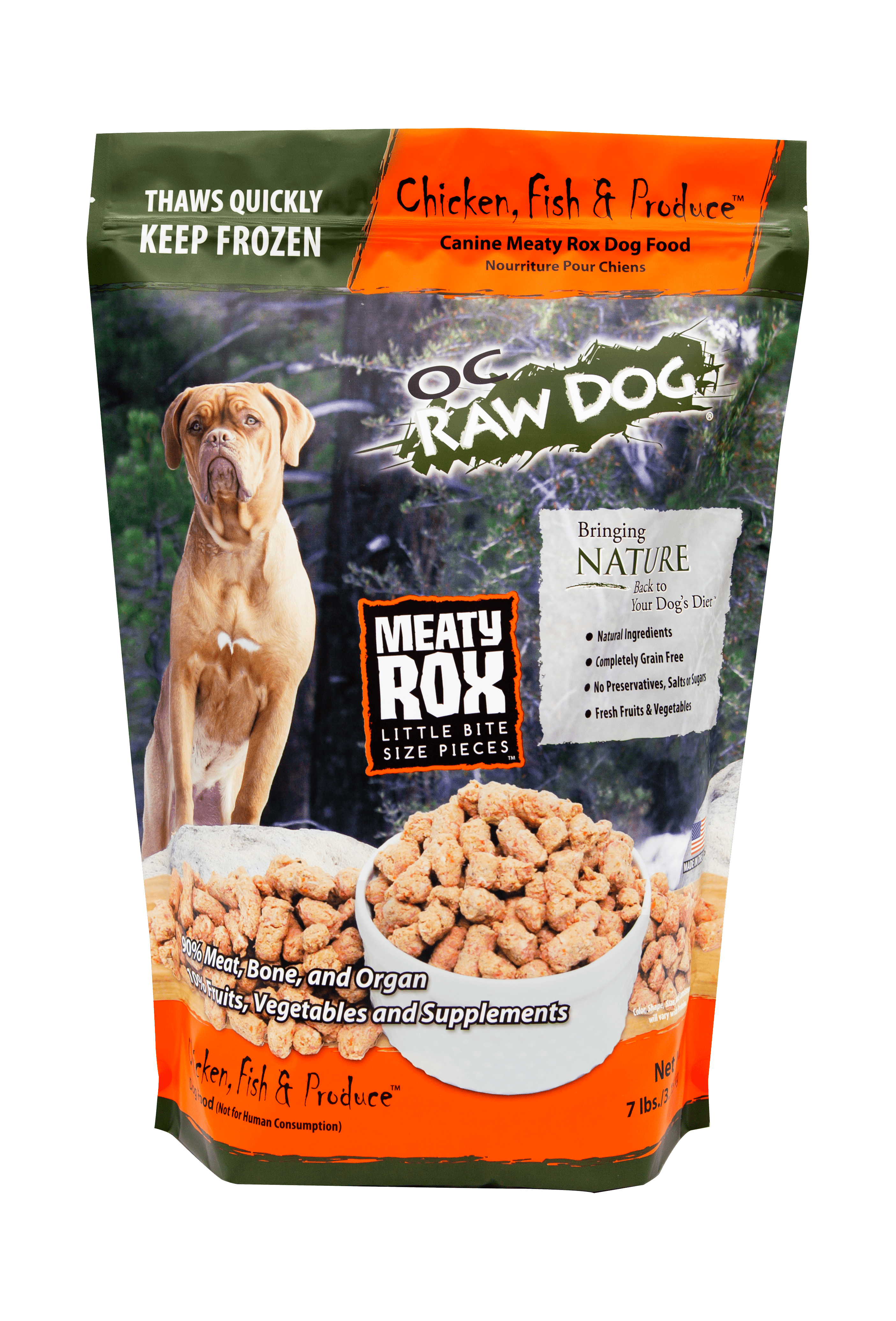 At OC RAW DOG we only use meat and poultry from USDA inspected and certified suppliers. All produce and proteins are Human Grade. Our food does not contain any chemicals, enhancers, or preservatives, remnants, processed meals, denatured, or renderings. We do not source any of our meat or produce from China or Mexico. EVERYTHING we use is USA grown (except our lamb and goat which usually comes from New Zealand or Australia).WARNING ~ Our food is not meant for people but it had been mistaken in the fridge for meatloaf, baked, served, and eaten.