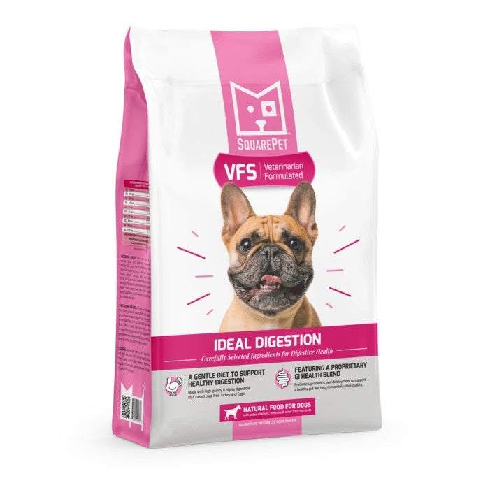 SquarePet VFS Ideal Digestion has been designed by SquarePet’s team of veterinary professionals to support digestive health. Ideal Digestion is made with cage free turkey from South Dakota and cage free whole eggs from California to create a highly palatable and easily digestible diet perfect for sensitive stomachs.