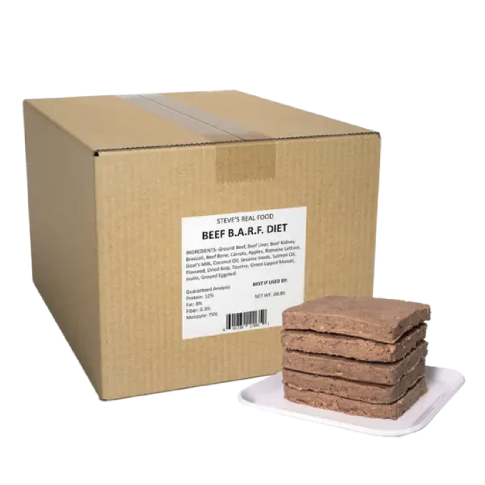 Pet owners love Steve's Real Food Beef Diet for the low-fat, nutrient dense, and lean muscle meat we use. Beef is particularly high in zinc and copper--two nutrients that work together to support the metabolism. In addition to the exceptional nutritional benefits of the meat, our Beef Diet contains unique ingredients, such as high-fiber apples, which provide a complete and balanced nutritional profile. One of the differences between Steve's and other raw meat diets is our meat-to-veggie ratio of 80% to 20%. This gives your dog nutrition that provides the proteins and essential vitamins and minerals that help fight disease and promote strong bones, muscles, and organ function.