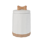 Designed to complement modern home décor! This treat jar features matte speckled ivory glaze, scalloped sculpt, and an exposed stoneware base and bone handle that give a unique natural look and feel.