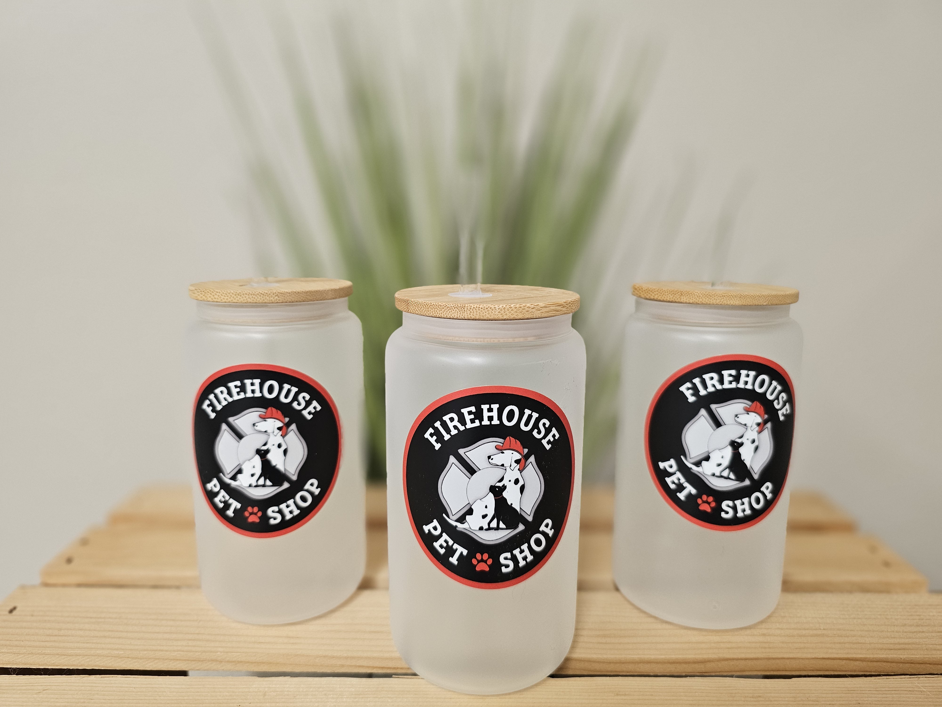 Firehouse Frosted Glass Tumbler with Bamboo Lid and Straw
