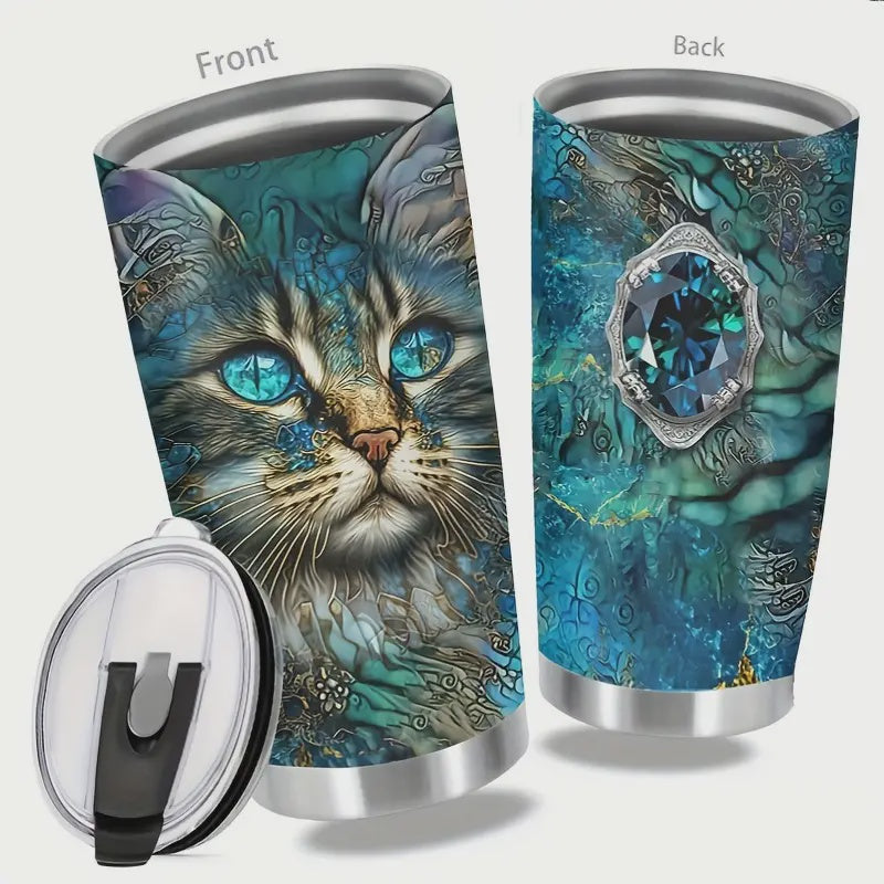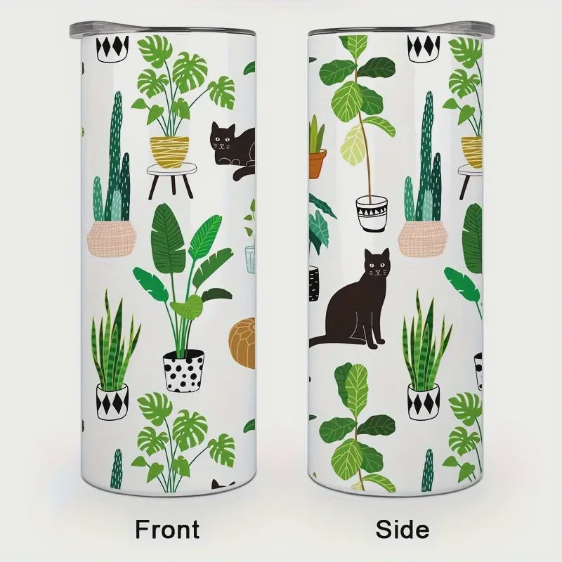 Cartoon Kitty Faces Skinny Tumbler with Straw 20oz