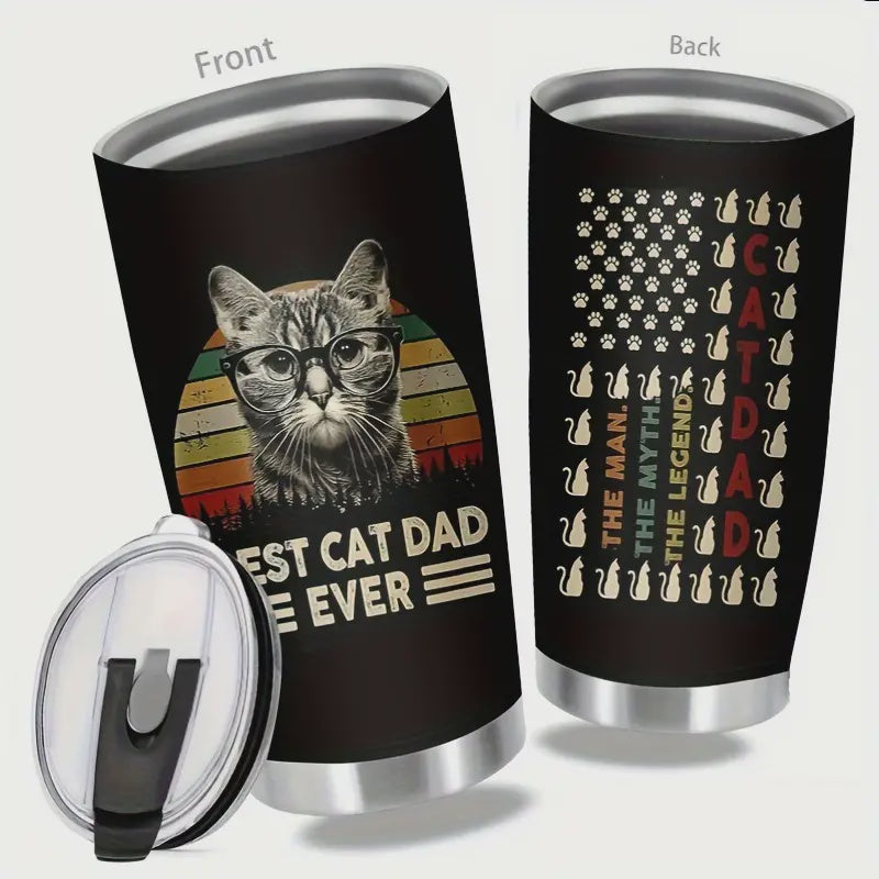 Retro Best Cat Dad Man Myth Legend Black Tumbler