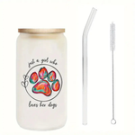 Sip in style with our Just a Girl who Loves Her Dogs glass tumbler! Made of sturdy borosilicate glass, it comes with a bamboo lid, reusable glass straw, and straw cleaning brush. The cute rainbow pawprint design is perfect for the ultimate dog mom. Cheers to being the best dog mom ever!