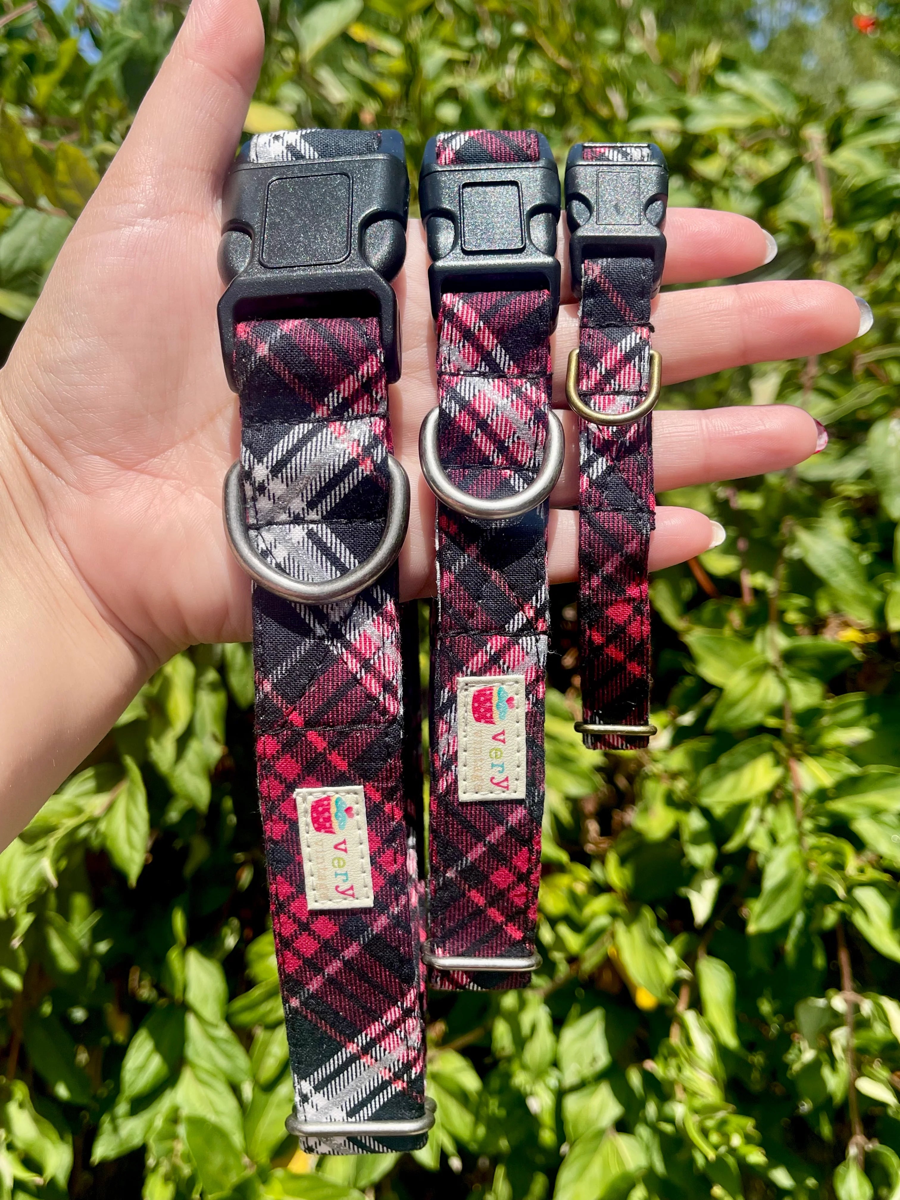 This collar is adorned with a super soft plaid in tones of red, silver and black! So perfect for winter! This collar is sure to make your furry friend stand out!