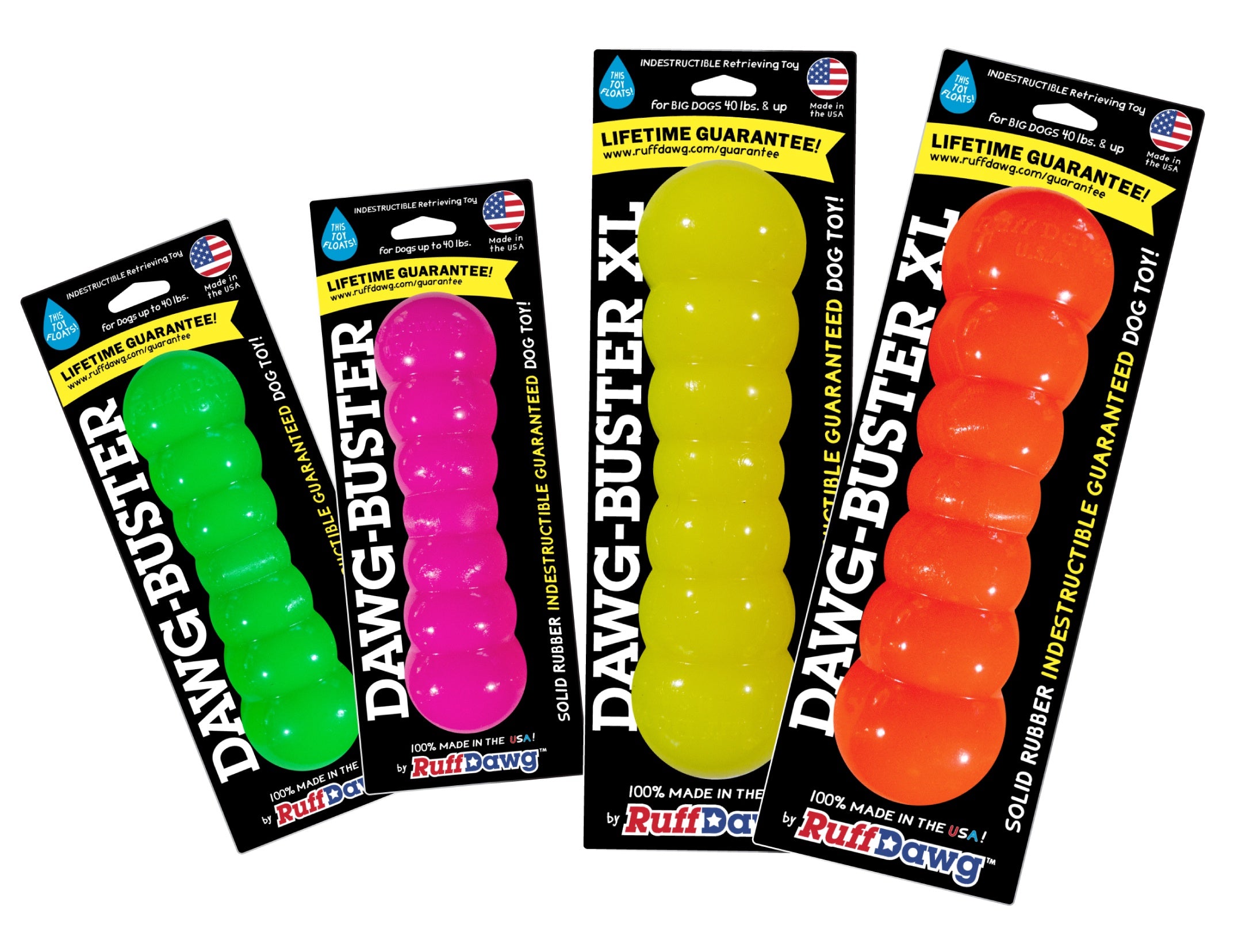 Ruff Dawg’s toughest toy yet, the Indestructible Dawg-Buster is designed to stand up to the most intense play! In 2 sizes and an assortment of bright high-visibility neon colors that won’t get lost in the grass or the pool.
