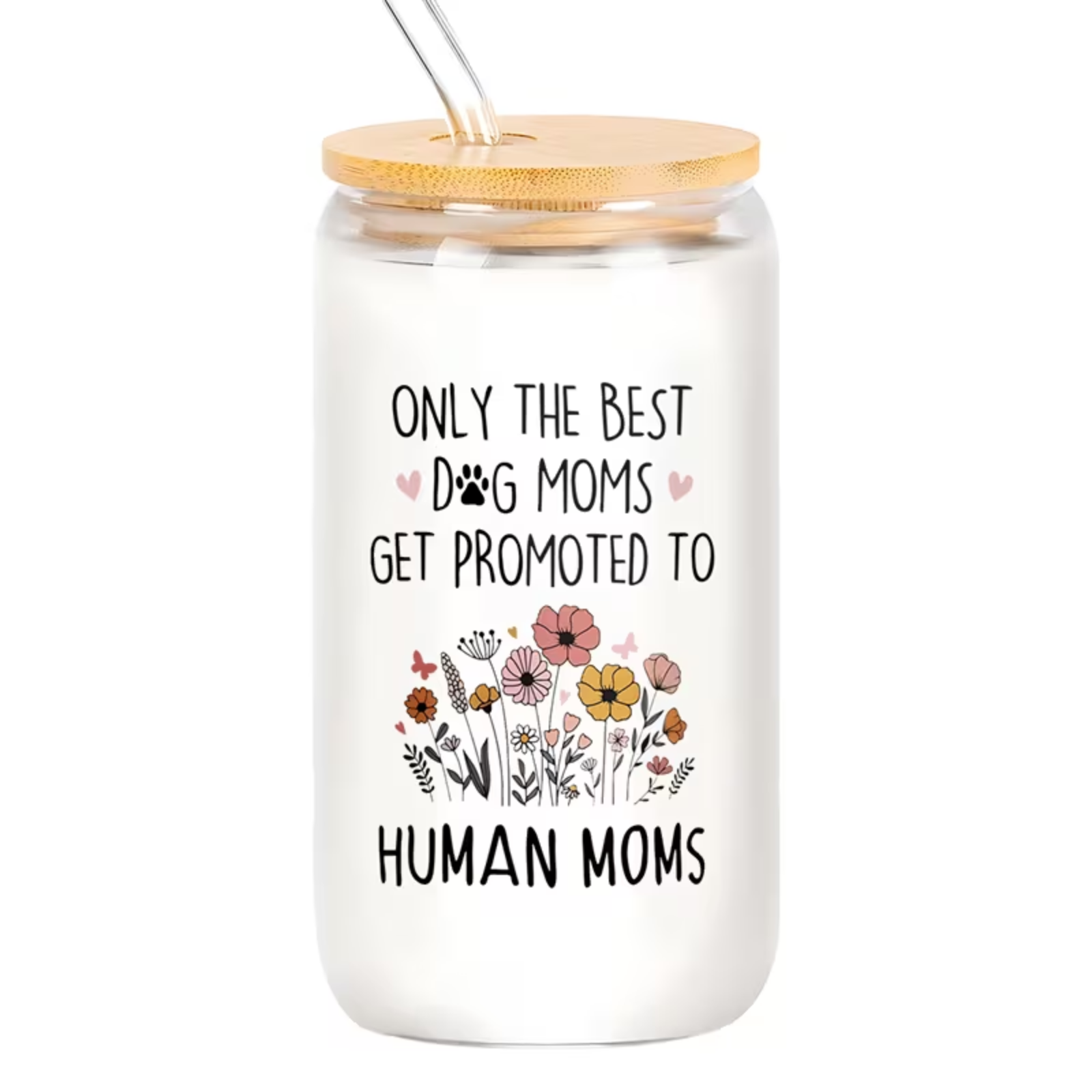 Dog Mom to Human Mom Glass Tumbler with Straw