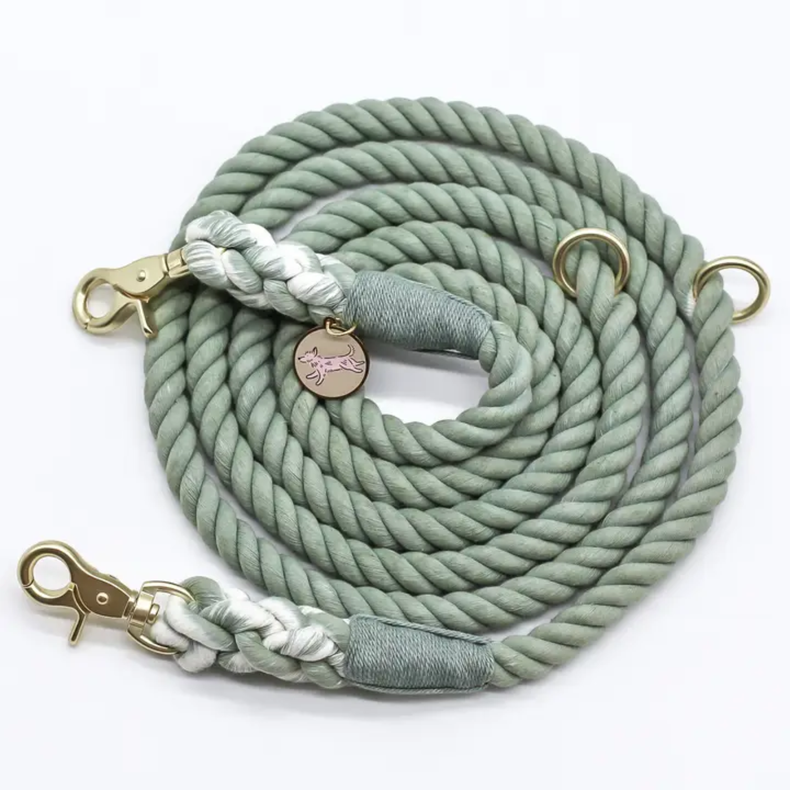 Hands-Free 100% Cotton Rope Leash | 8ft Length The most versatile & comfortable walking leash for busy people who love to multi-task or like go running with their pups. This is our go-to leash for long walks. Easily the best leash for any busy pet owner who needs an extra hand for coffee or for running errands around the neighborhood. How to Use:  Fitting is adjustable to fit your waist, or worn as a crossbody. Simply rotate & move the O-ring to your desired comfort. Can also be used as a standard 4 Ft walking leash.  * 8 Ft long rope  * 0.5 in rope (dia.) * 2 O-Rings for adjustable fitting + poop bag holder, etc. * Light gold brass-colored hardware & tag * All handmade & custom hand-dyed color * 100% Cotton Rope  Ideal for walking smaller sized dogs. Any hands-free leash is not advised for dogs that tug & pull, or need additional leash training.