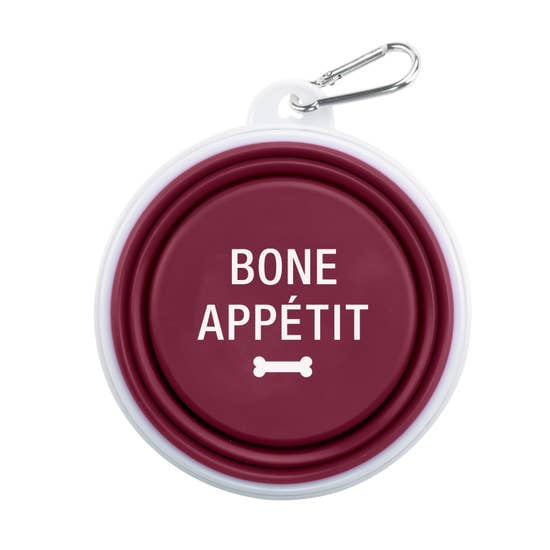 Our hilariously fun and functional silicone dog bowls include a carabineer to attach to a belt, backpack, or purse so your furry friend always has water or food on the go! Capacity: 12oz. Material: Silicone, Metal.
