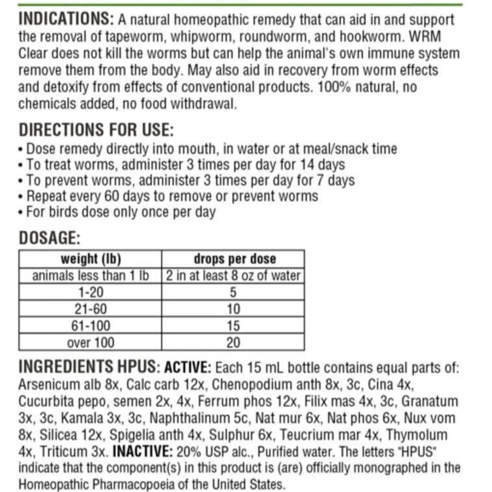 A natural medicine that may aid in and help support the removal of tapeworms, whipworms, roundworms, and hookworms in dogs, cats, and other animals of all ages, from kittens and puppies to seniors. Veterinarian-formulated to help support the body’s natural defenses, it may also help detoxify and aid recovery from the effects of worms and conventional de-worming treatments.