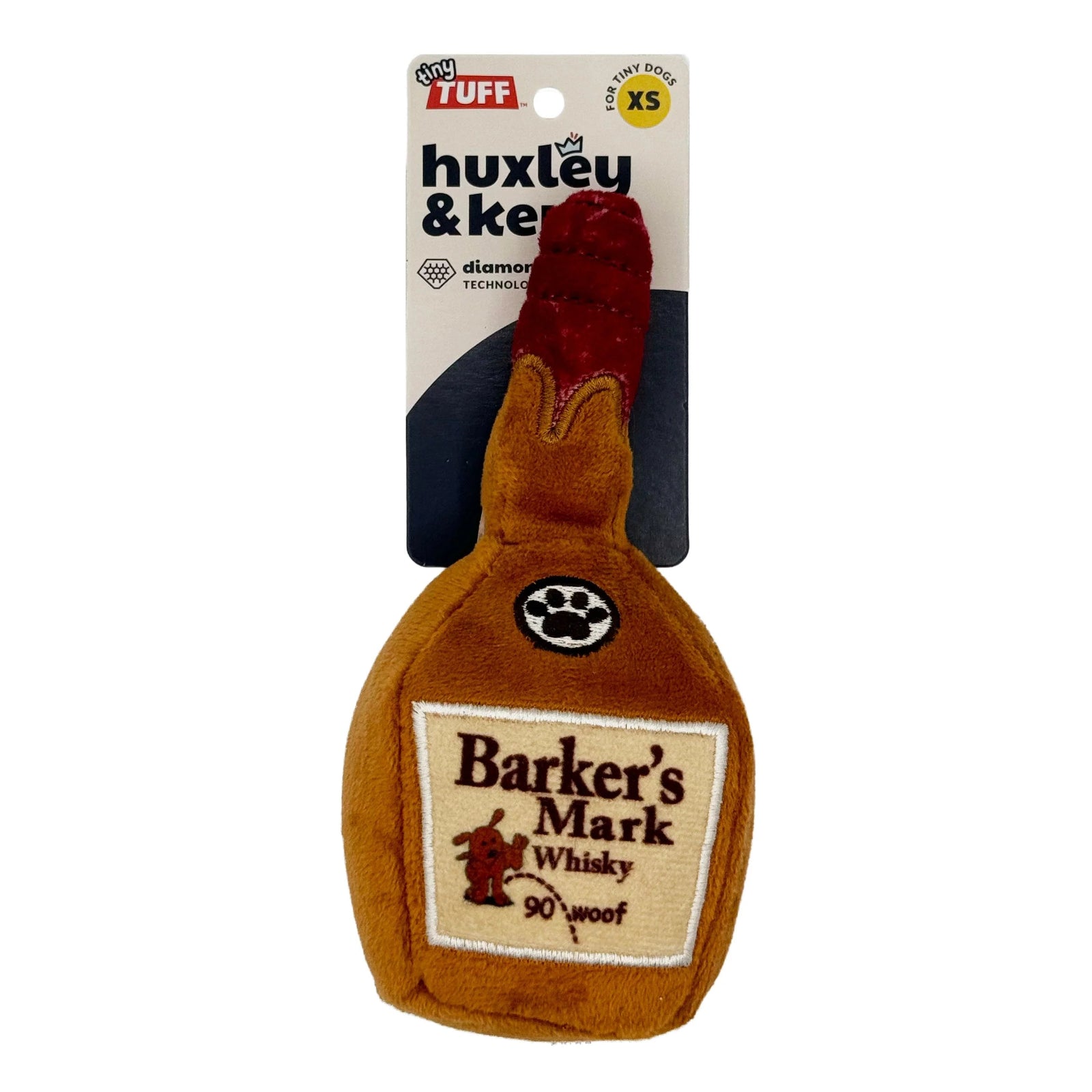 Get your pup feeling classy and playful with Tiny Tuff Barker's Mark! This whisky-inspired dog toy is sure to provide hours of fun and entertainment for your pup. Perfect for the dog who is as refined as their human!