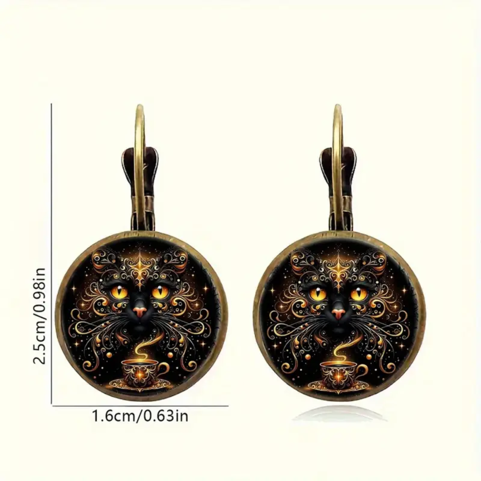 Add a touch of mystery and charm to your look with these Vintage Gothic Black Cat & Coffee Earrings. Featuring intricate antique gold plating and a whimsical feline design, they’re perfect for cat lovers who adore a cozy coffee vibe. Whether for everyday wear or special occasions, these statement earrings make an enchanting gift for birthdays or anniversaries. Let your style purr with playful elegance!