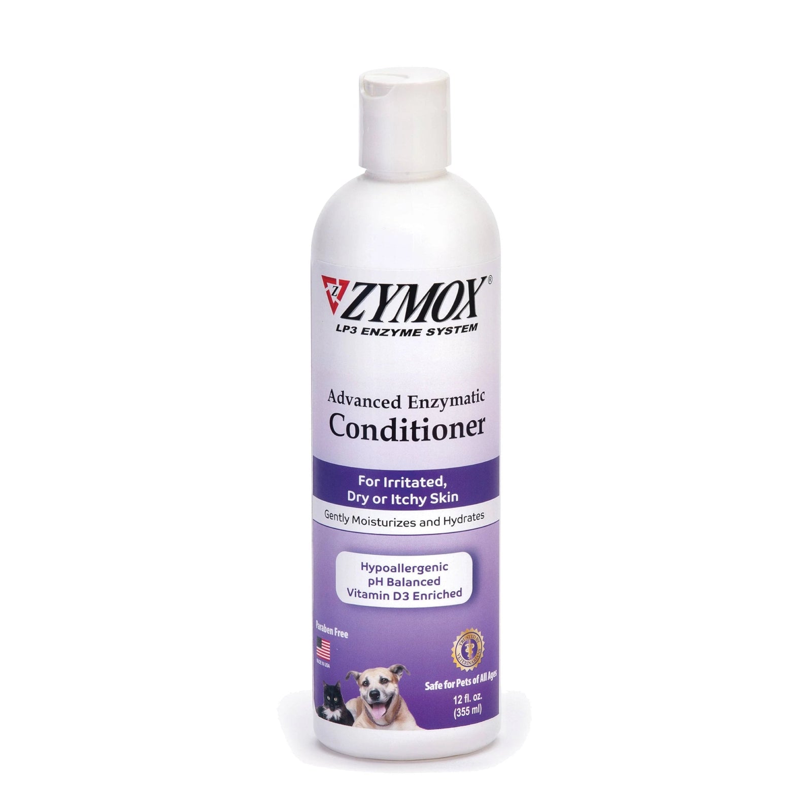 Zymox Advanced Enzymatic Conditioner is formulated with the patented LP3 Enzyme System which blends a concentrated combination of protein, enzymes and Vitamin D3 to be safe and gentle on all pets of all ages. ZYMOX Advanced Enzymatic Conditioner leaves a moisturizing protective layer that soothes, hydrates and helps relieve a pet's itchy, dry skin. Paraben and silicone free, its natural scent helps to deodorize the skin and the coat.