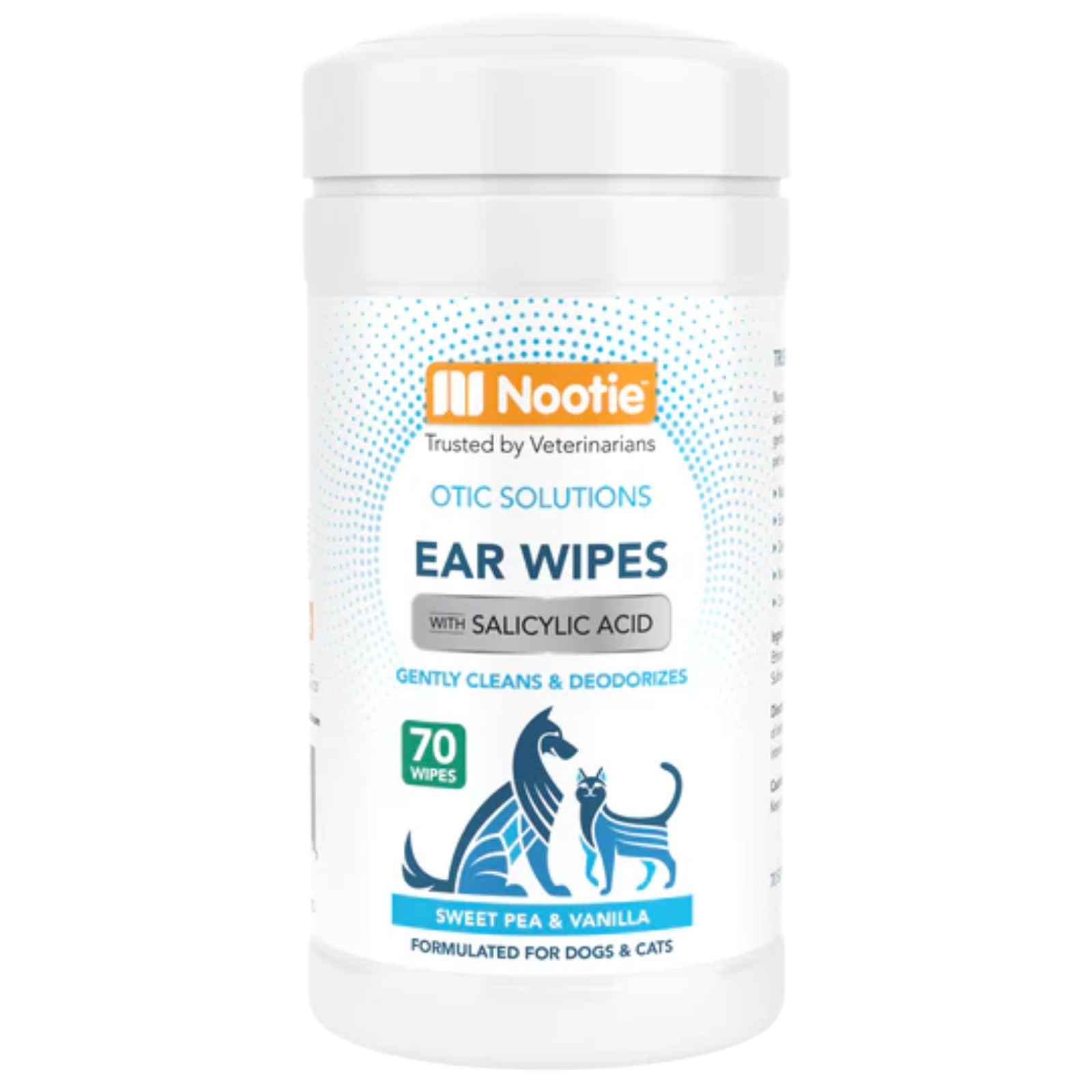 Nootie ear wipes may be used for routine ear cleaning in a healthy ear. Helps eliminate ear odor. It may be used for dogs and cats of any age. It is infused with the delicate scent of Sweet Pea and Vanilla.